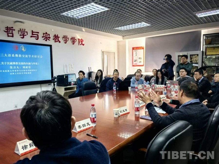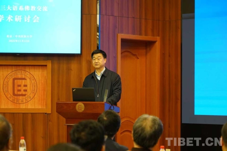 中国西藏网讯 11月12日,由中央民族大学哲学与宗教学学院、中国社会科学院世界宗教研究所联合主办的“中国三大语系佛教交流学术研讨会”在北京召开。本次会议以“对话交融·互鉴共生”为核心宗旨,聚焦汉语、藏语、巴利语三大语系佛教传承演变的历史进程、内在关联、主要特点和当下状况,为推动我国佛教中国化理论研究、铸牢中华民族共同体意识提供学术支撑。