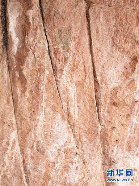 西藏昌都市发现的吐蕃时期摩崖石刻造像局部(3月15日摄)。次巴多吉 摄