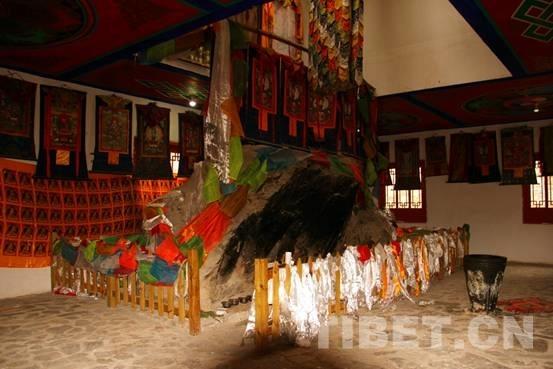 图为文成公主庙内景,前来观瞻的人们在巨型岩石前系满了哈达,寄托对松赞干布和文成公主的敬仰缅怀之情。摄影:李元梅
