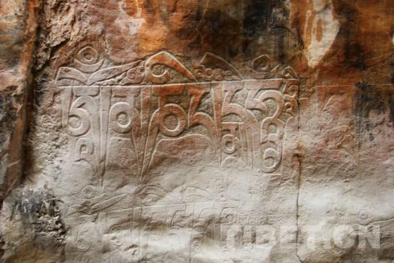 图为扎古西峡谷摩崖石刻局部。(中国西藏网 记者/李元梅)