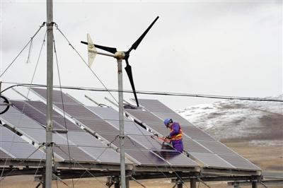 中国移动西藏公司工作人员在青藏铁路沿线维护基站 图片来源:西藏日报