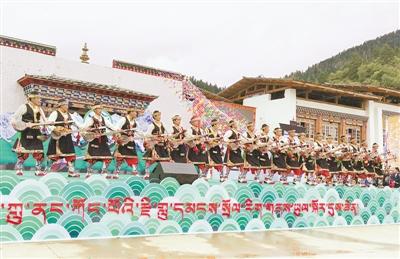 图为在第二届鲁朗工布牧歌民俗文化旅游节开幕式上,演员在表演原生态舞蹈《舞动扎念》。麦正伟 摄