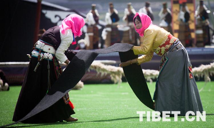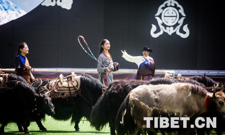 开幕式文艺演出真实再现了当下当雄农牧民群众在草原上自由自在的游牧生活,捡牛粪、打酥油、熬茶、洗羊毛、捻线、织布、祈愿……一些牧民在草原上的日常生活场景被艺术化处理后搬上舞台,还有当雄人民喜爱的马匹和他们生产生活中离不开的牦牛也纷纷上场表演,一时间当雄这片净土上处处洋溢着牧民群众的欢声笑语,让现场观众切身体验和感受了一场游牧文化盛宴。
