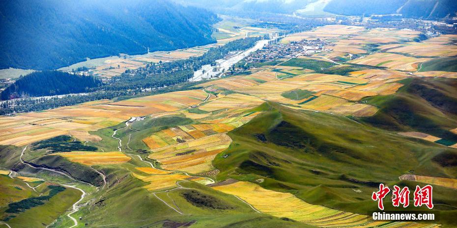 九月中旬,航拍位于祁连山腹地的青海省海北藏族自治州祁连县,远处的险峰、近处的山林、静谧的小镇,一幕幕祁连山秋季山水林田湖草的和谐画卷展现眼前,每一幅都是壁纸。图/苏金元