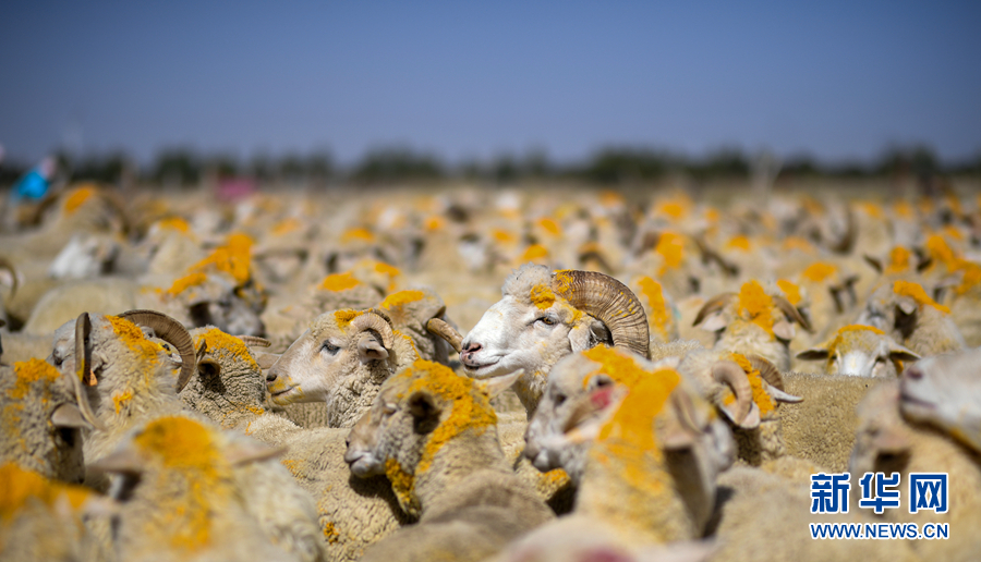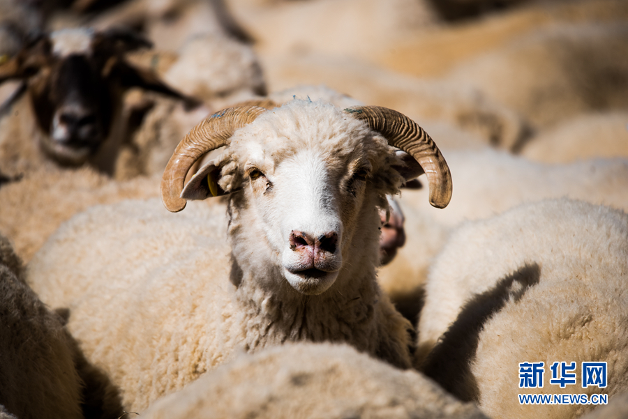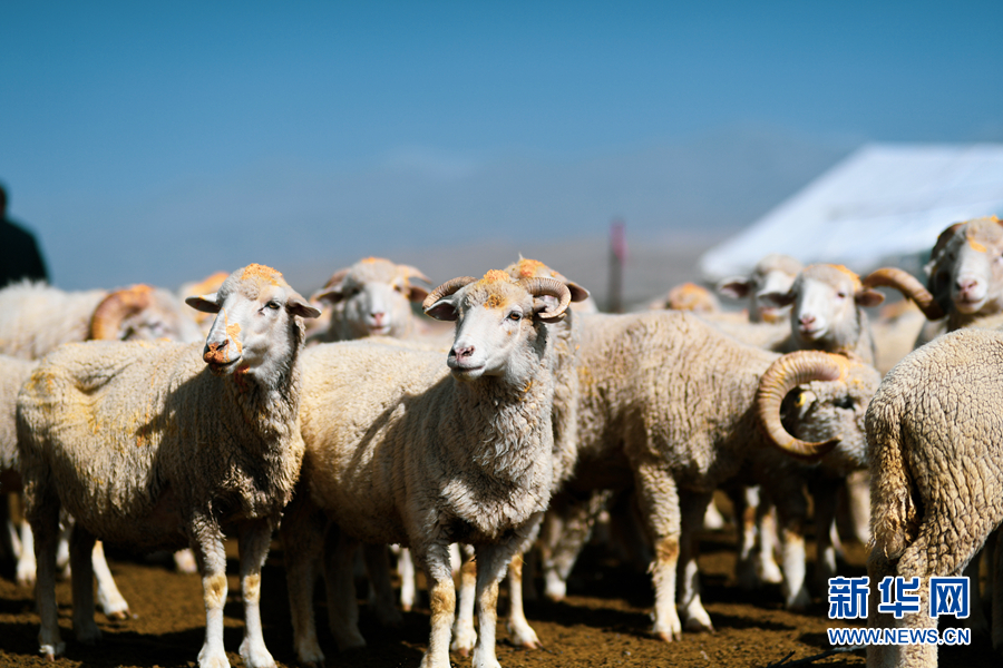 图为青海省海西蒙古族藏族自治州乌兰县金泰牧场内的茶卡羊。新华网 潘彬彬摄