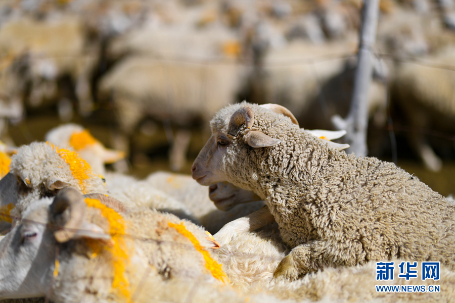 图为金泰牧场内的茶卡羊。新华网发(宋忠勇摄)