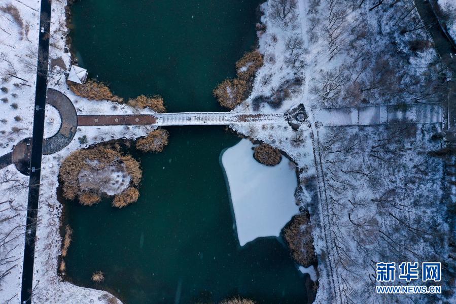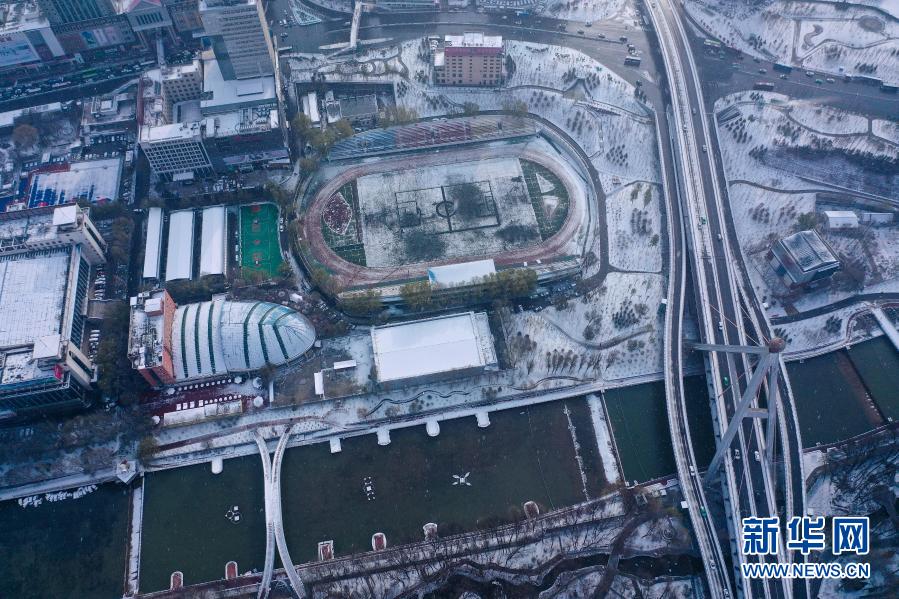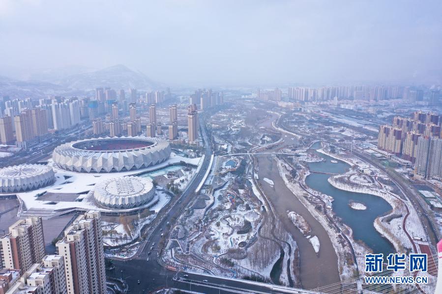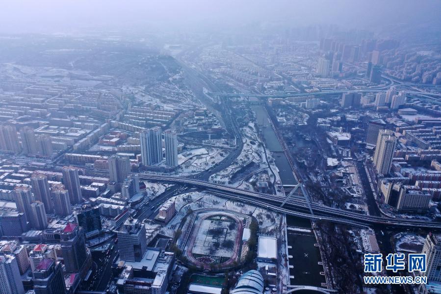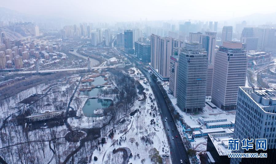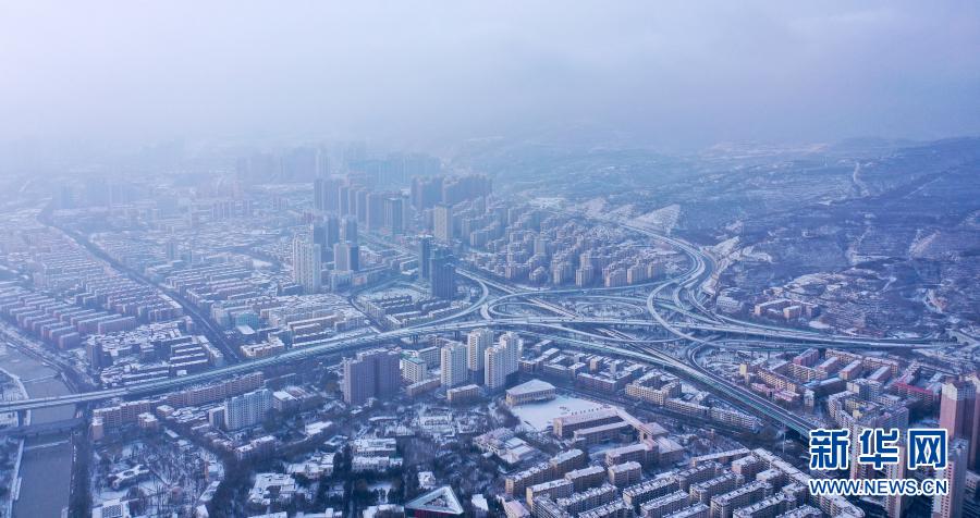 受北方冷空气影响,11月20日夜间,青海省东北部出现降雪、降温天气过程。雪后从空中俯瞰,高原古城西宁被白雪覆盖。
