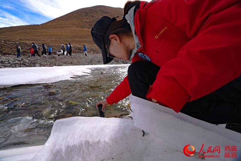 科研人员在冰面上取样。人民网记者 徐驭尧 摄