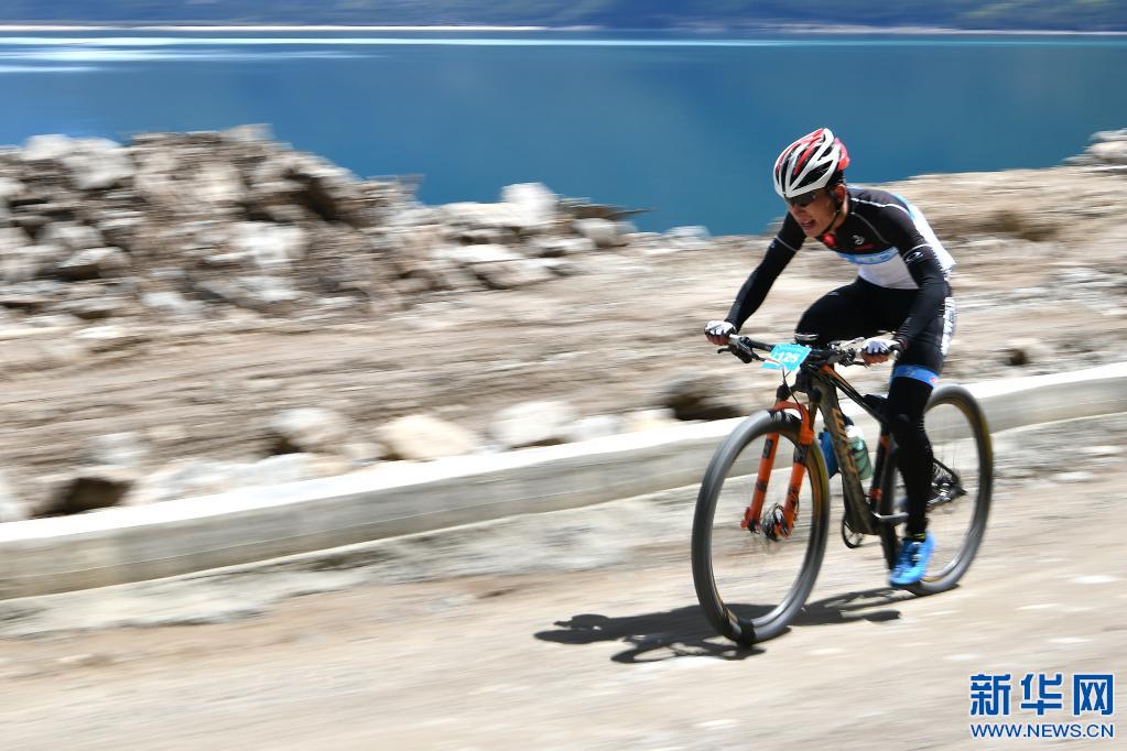 选手李俊杰在第七届环巴松措山地自行车越野竞速赛中骑行(2019年5月1日摄)。新华社记者 李鑫 摄