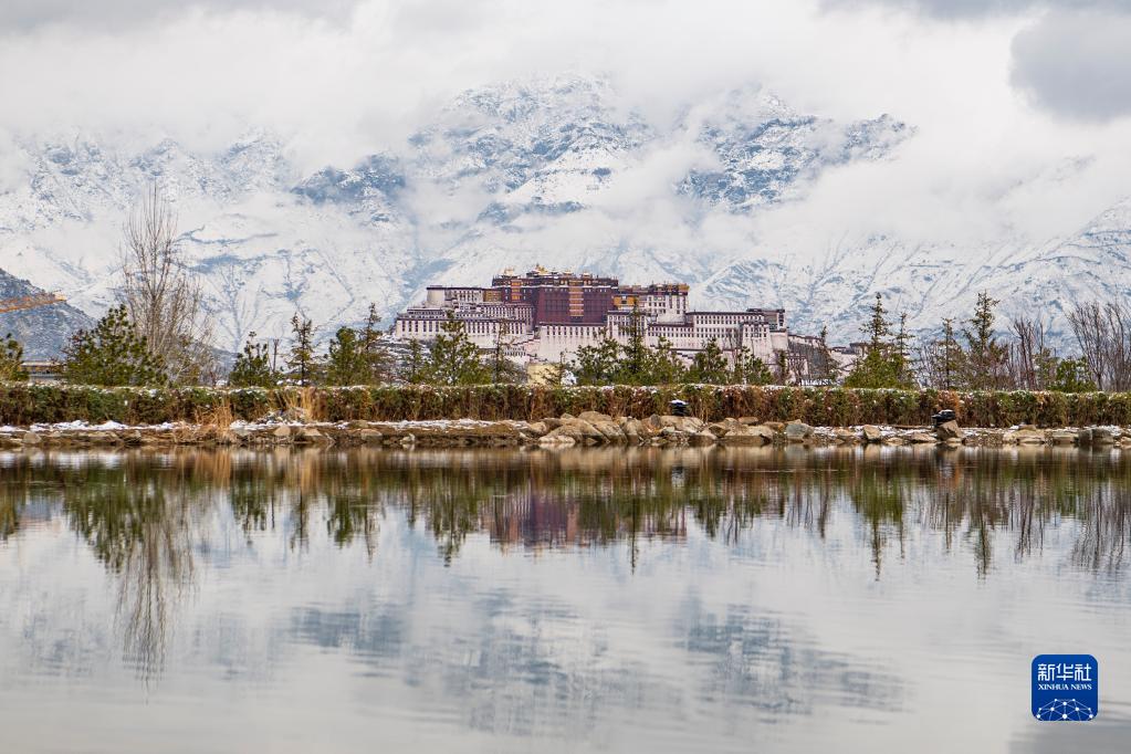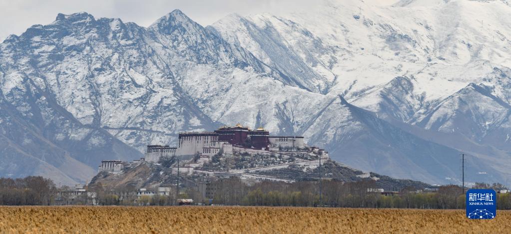 从拉鲁湿地拍摄的雪后布达拉宫(3月30日摄)。新华社记者 晋美多吉 摄