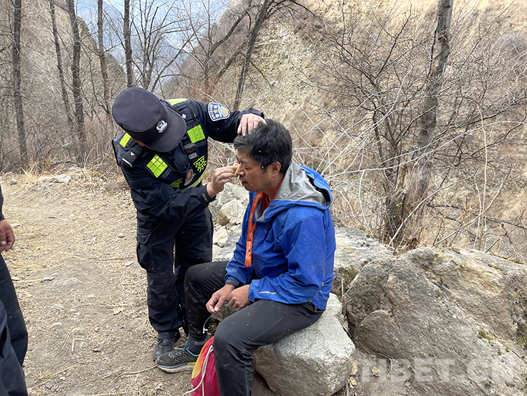 图为派边境派出所民警找到走失游客并为其处理伤口