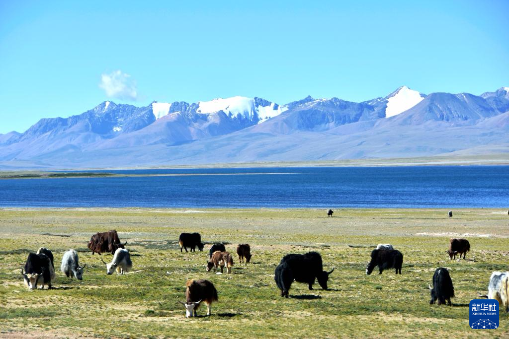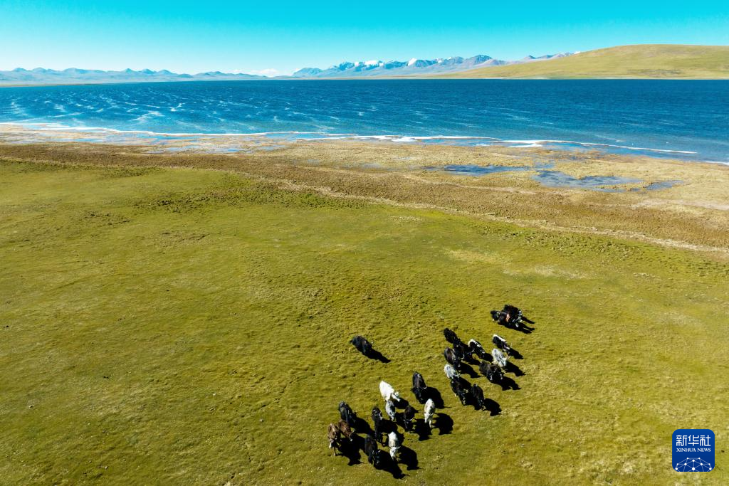 打加错湖畔的牛群(8月30日摄)。新华社记者 刘文博 摄