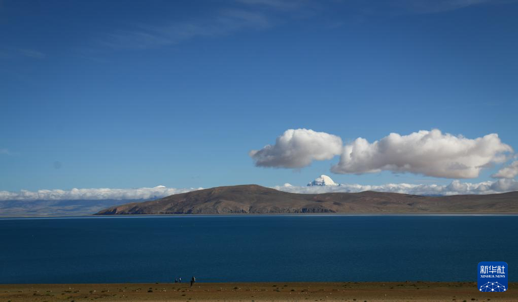 冈仁波齐峰和湖水交相辉映(8月13日摄)。新华社记者 曹槟 摄