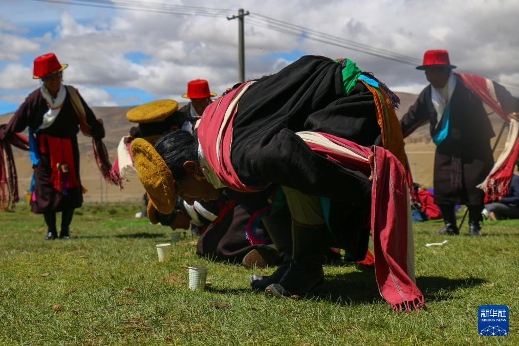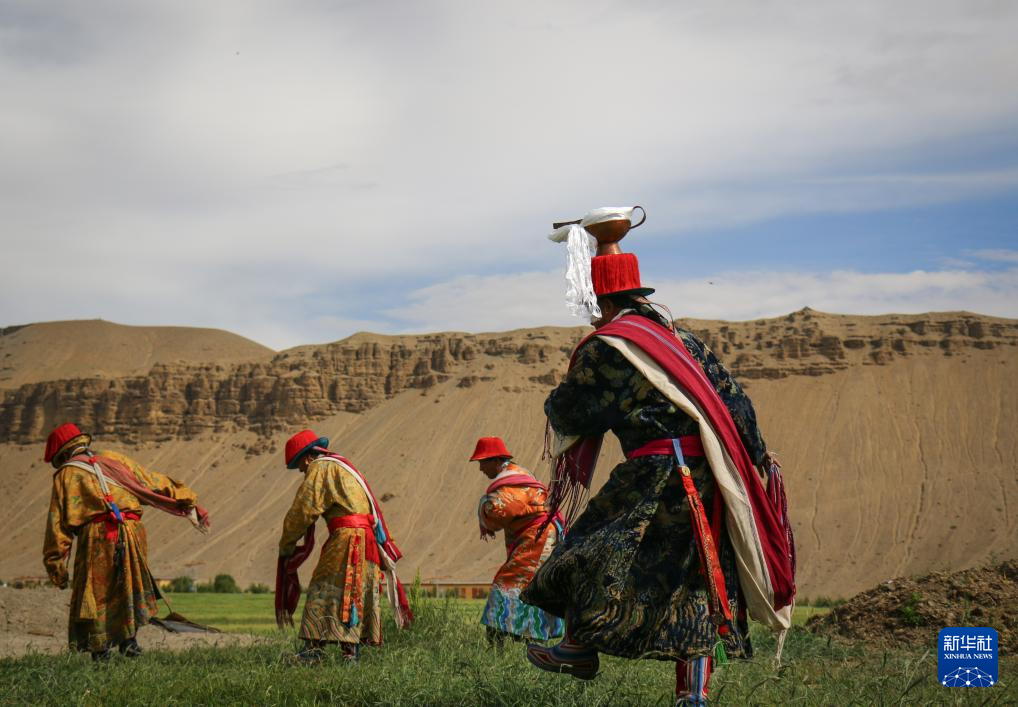 仁贡村村民正在表演敬酒歌“雅尔松吧”(8月11日摄)。新华社记者 曹槟 摄