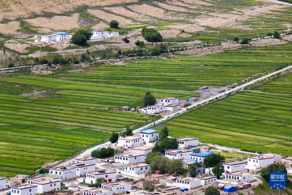 被青稞田点缀的西藏普兰县村庄(8月12日摄)。新华社记者 曹槟 摄
