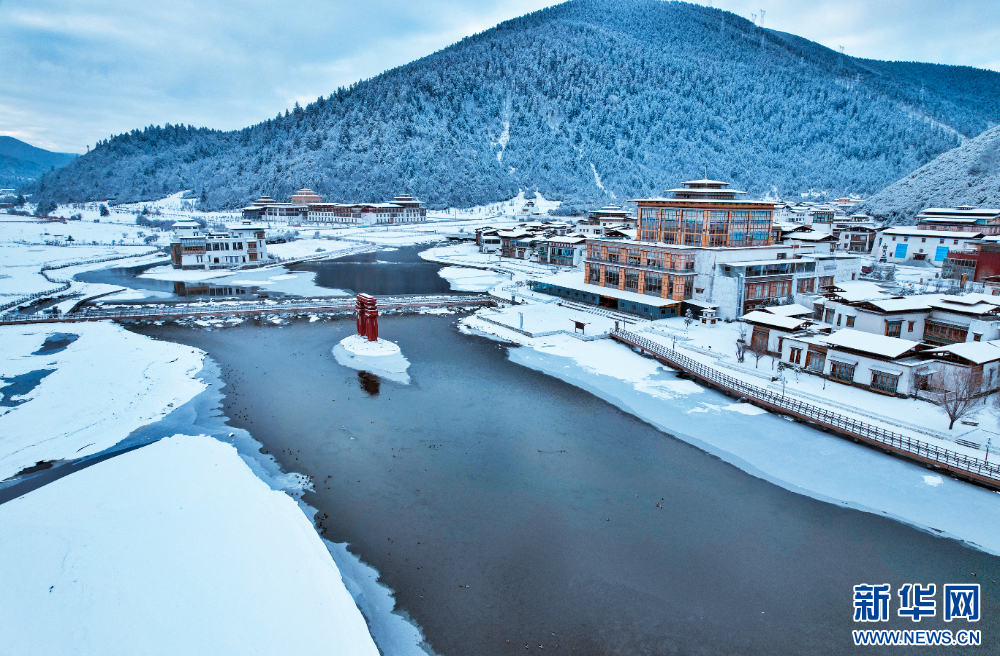图为1月3日雪后的鲁朗国际旅游小镇(无人机照片)。新华网发 姚力 摄