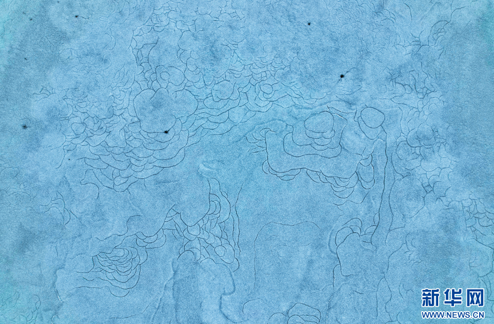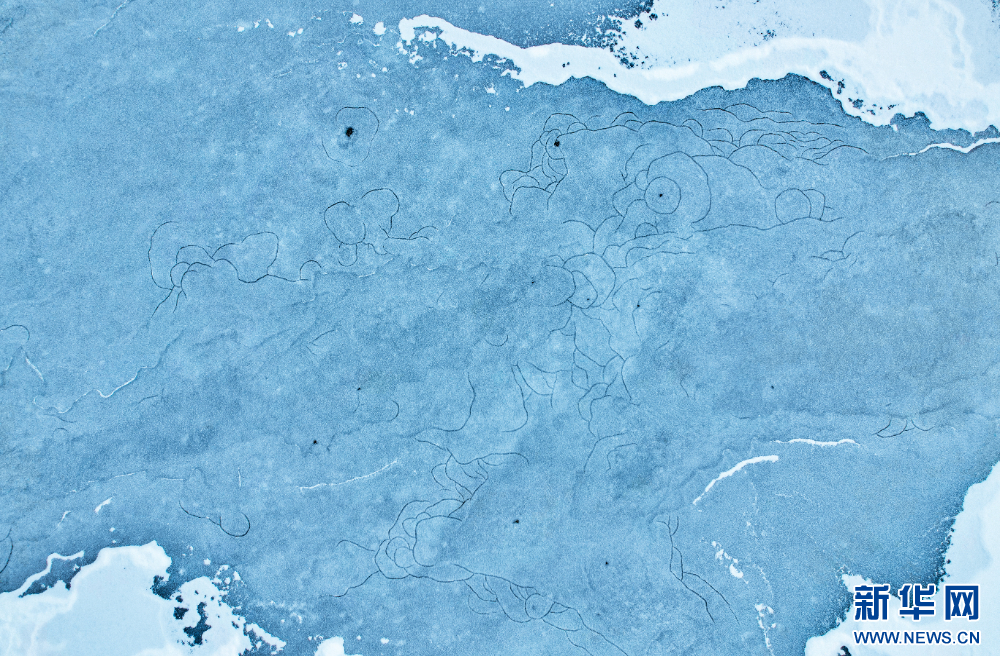 图为1月3日降雪后扎塘鲁错湖面自然形成的冰纹(无人机照片)。 新华网发 姚力 摄