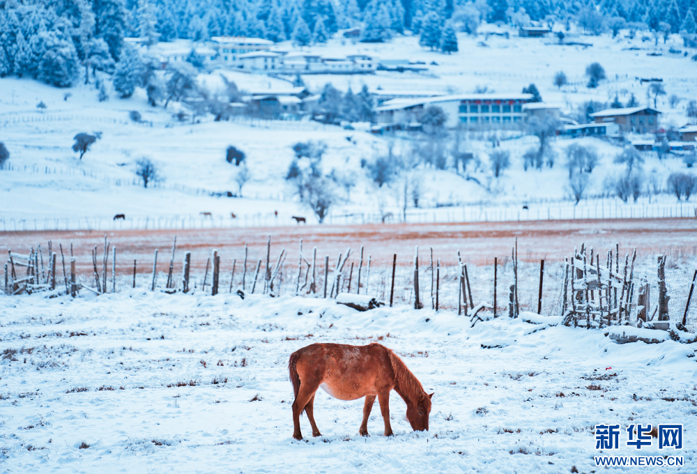 马儿在雪地中觅食(1月3日摄)。新华网发 姚力 摄