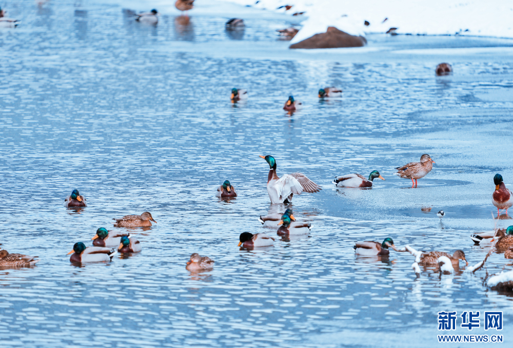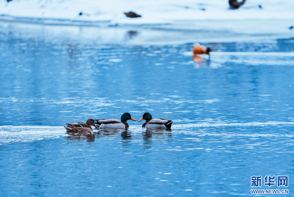 在扎塘鲁错湖面栖息的野鸭(1月3日摄)。新华网发 姚力 摄