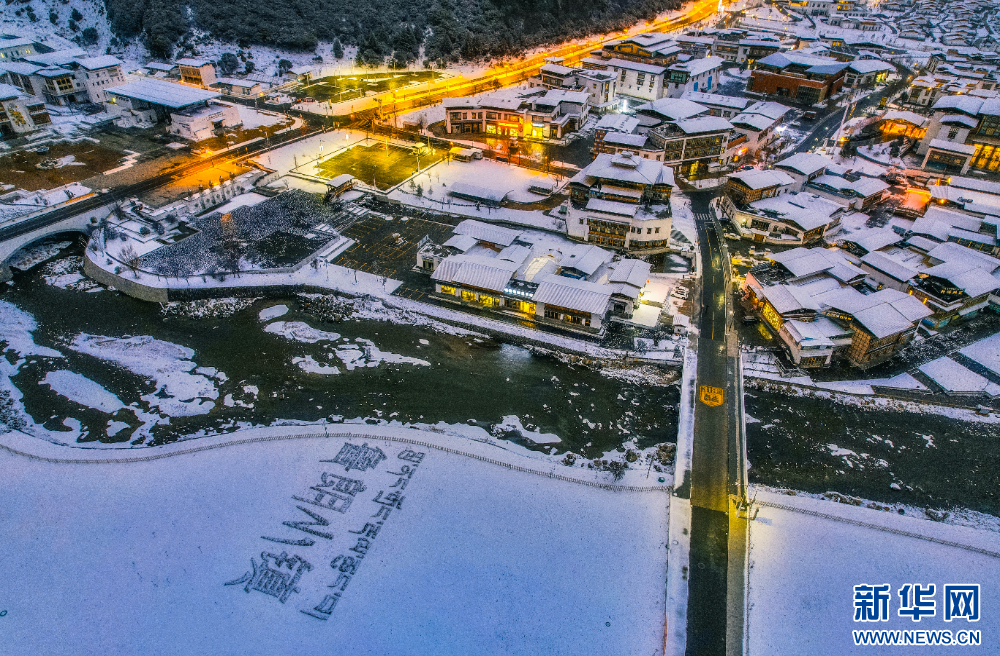 图为1月3日夜幕初始的鲁朗国际旅游小镇(无人机照片)。新华网发 姚力 摄