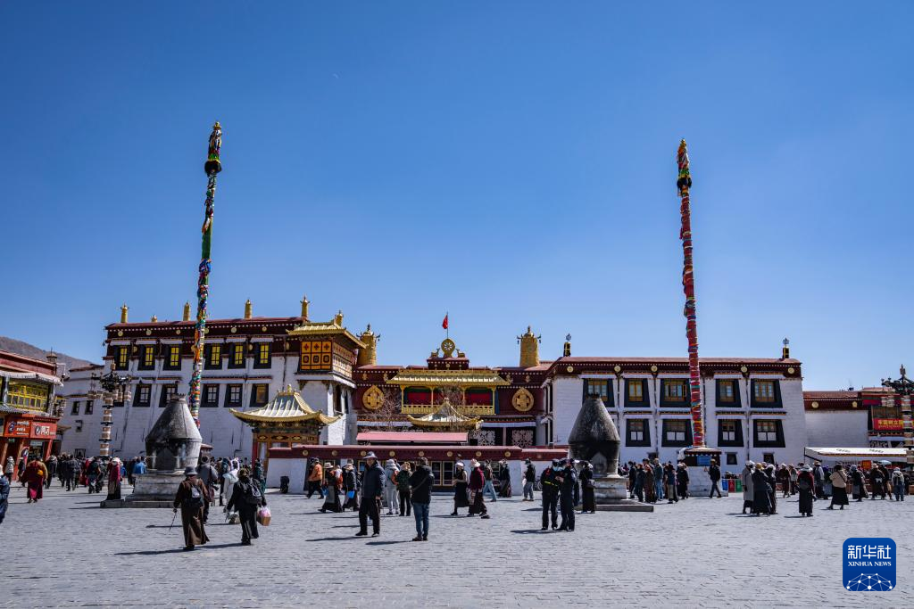 3月14日,拉萨市大昭寺广场前游人如织。新华社记者 孙非 摄