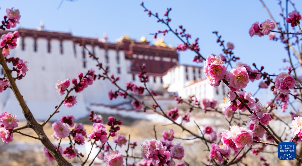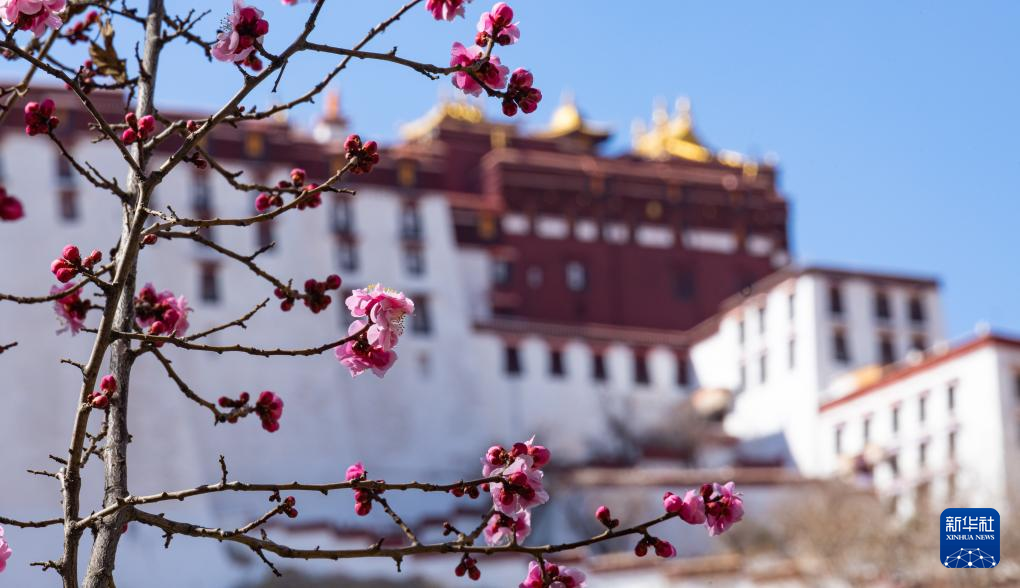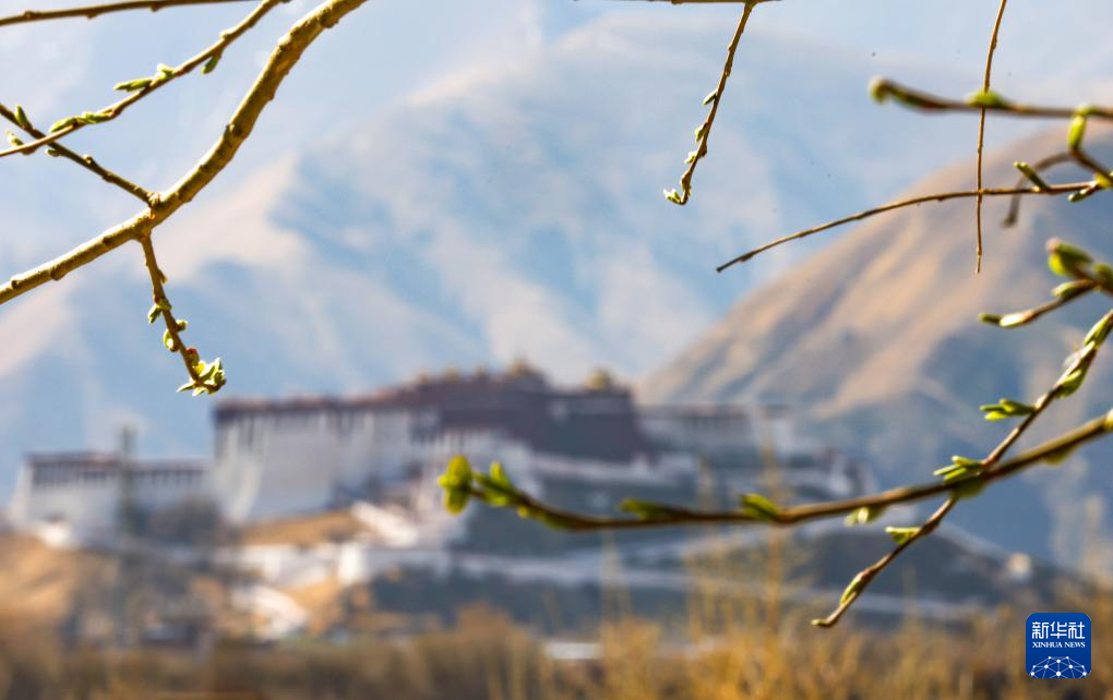 3月14日从拉萨市宗角禄康公园拍摄的春日布达拉宫一角。新华社记者 丁增尼达 摄
