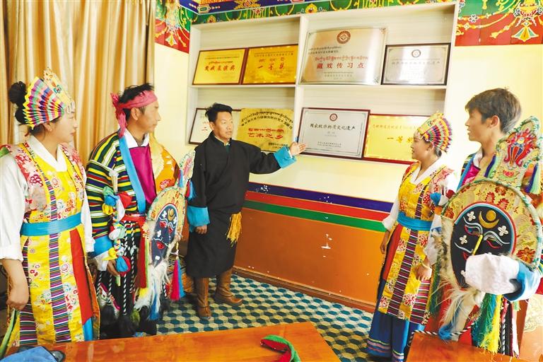 如今,随着国家、自治区对保护和发展少数民族优秀传统文化及特色村镇的政策不断完善和落实,觉木隆藏戏队迎来了再度发展的“春天”,成为全区首支能够完整演出西藏传统八大藏戏的民间藏戏队。2014年,洛桑扎西被评为西藏自治区非物质文化遗产传承人。深感责任重大、使命艰巨的他认为自己不仅要教队里的演员演戏,更应该履职尽责地推动藏戏传承。