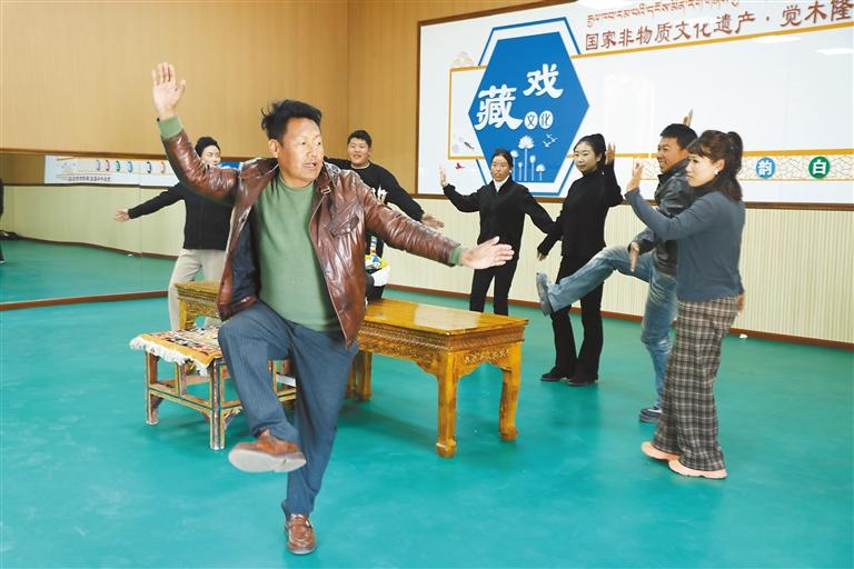洛桑扎西为年轻一代传授藏戏表演技艺。