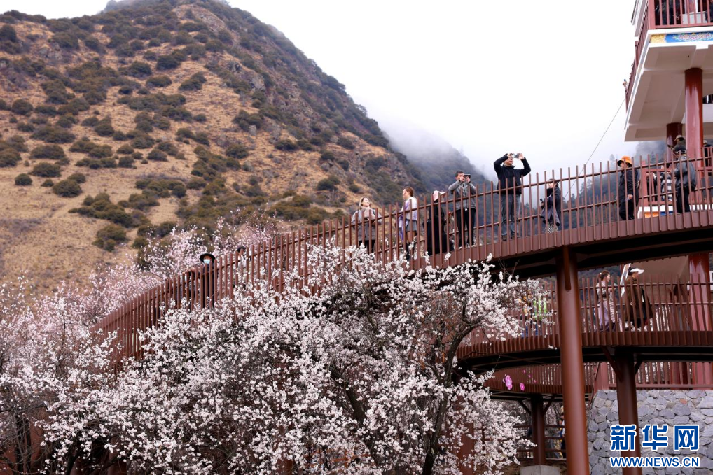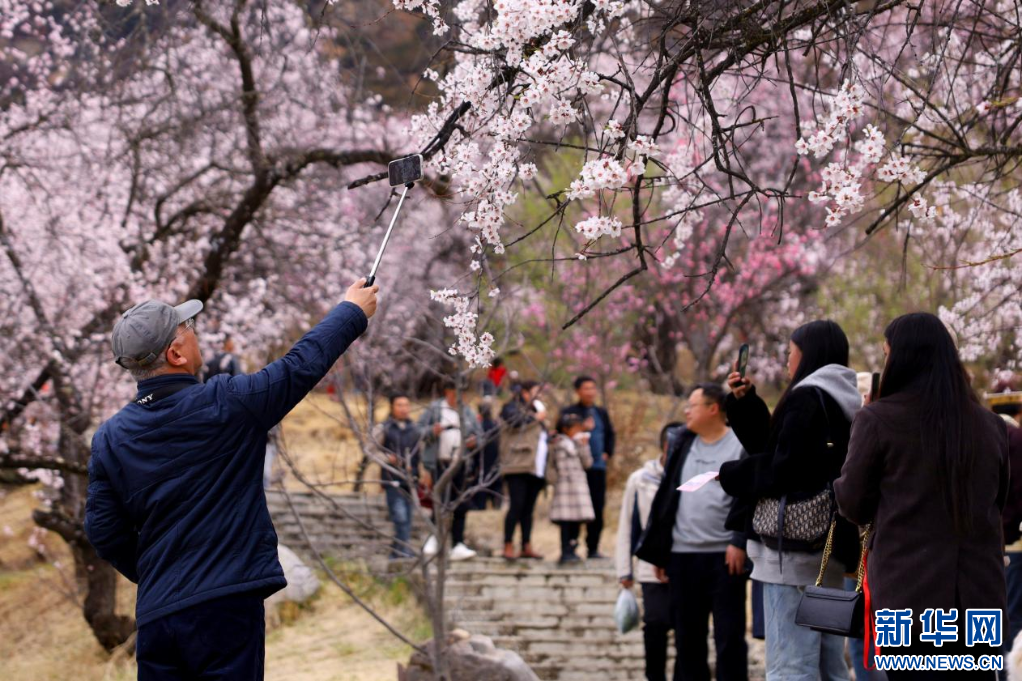 3月31日,游客在林芝市巴宜区嘎拉村拍照留念。新华网发 李腾 摄