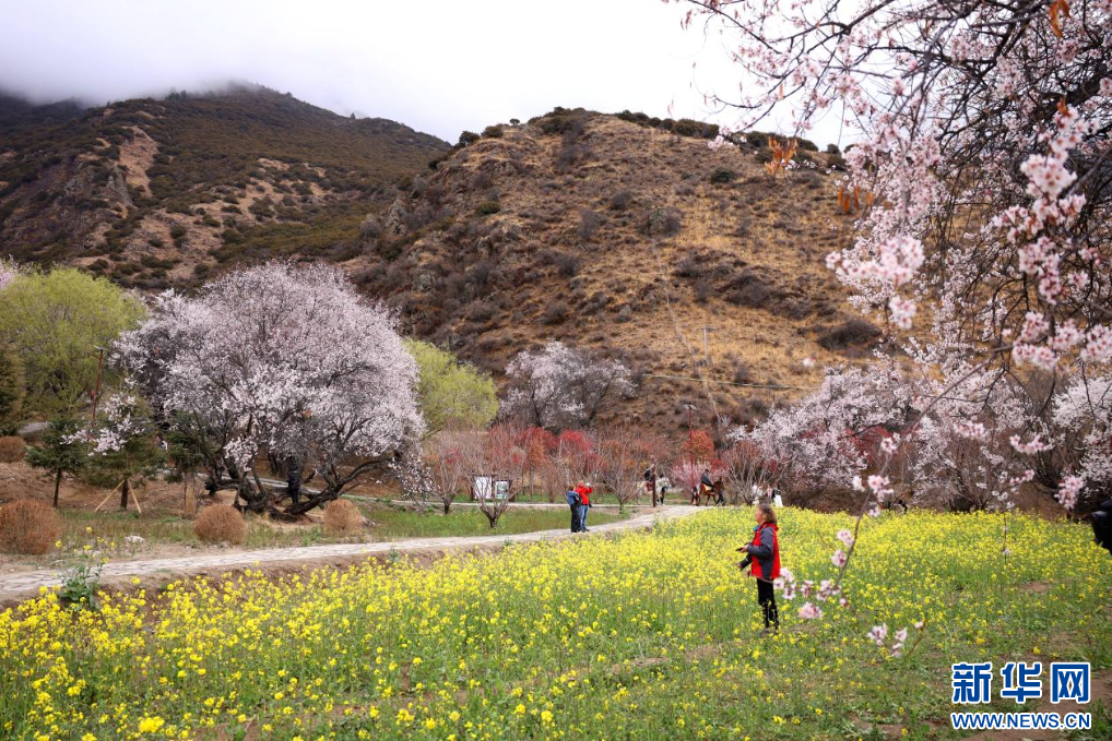 3月31日拍摄的林芝市巴宜区嘎拉村的桃花与油菜花。 新华网发 李腾 摄