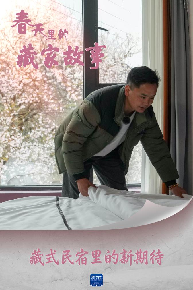 随着波密桃花“走红”,村里的桃花树吸引了天南海北的游客。“游客越来越多,因为没地方住,很多人都挤在村民家里,于是我就萌生出了开民宿的想法。”洛松顿珠说。