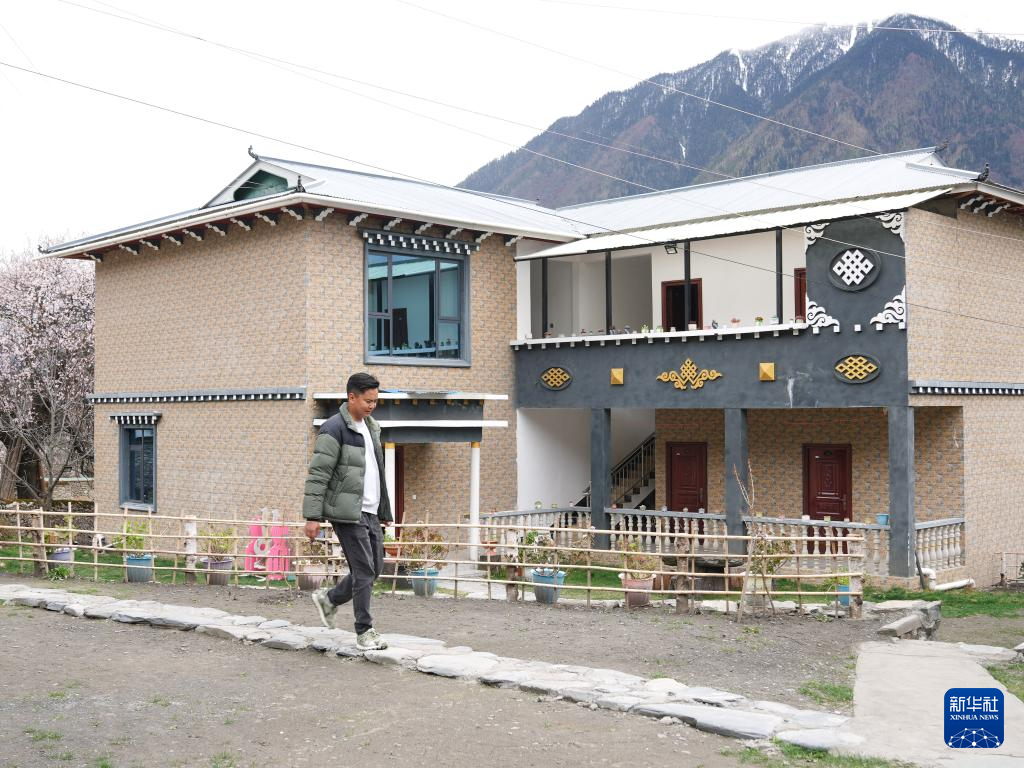 4月2日,洛松顿珠从自家民宿前经过。新华社记者 丁汀 摄