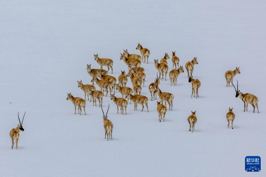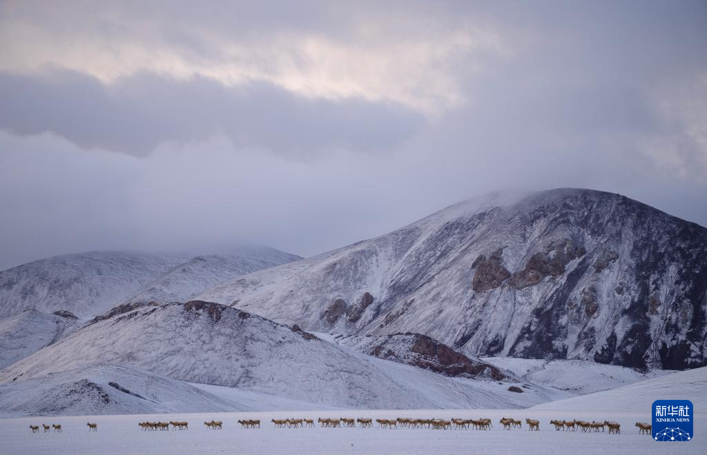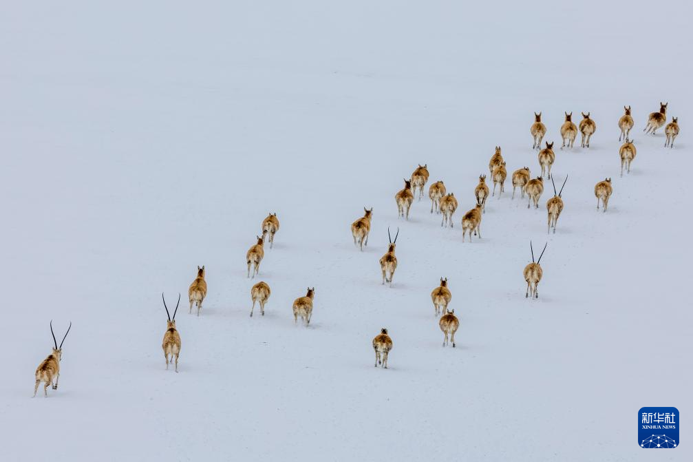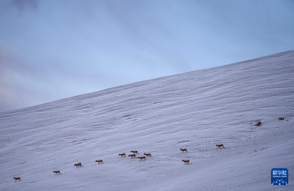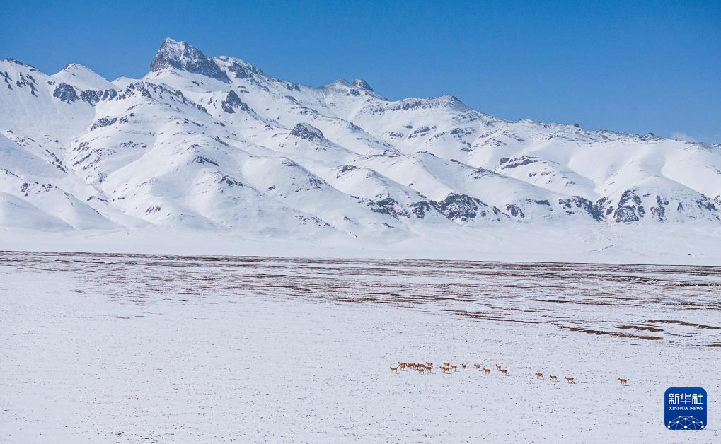 这是雪地中迁徙的藏羚羊(5月8日摄)。新华社记者 丁增尼达 摄