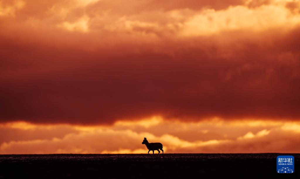 6月13日傍晚在羌塘国家级自然保护区拍摄的一只藏羚羊。新华社记者 费茂华 摄