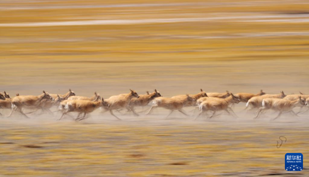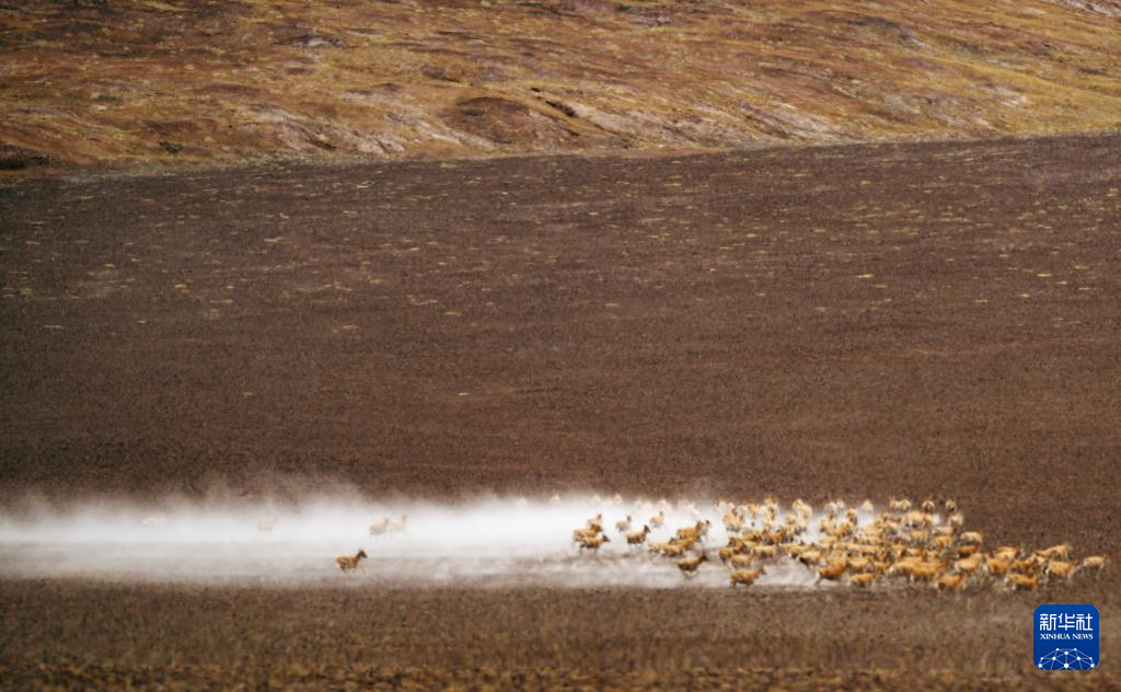 6月13日,在羌塘国家级自然保护区,迁徙中的藏羚羊奔跑起来。新华社记者 费茂华 摄