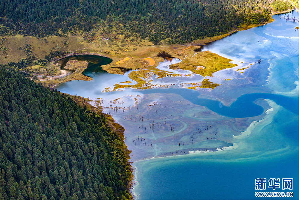 林芝市八一镇境内拍摄的措木及日(无人机照片)。新华网 旦增努布 摄