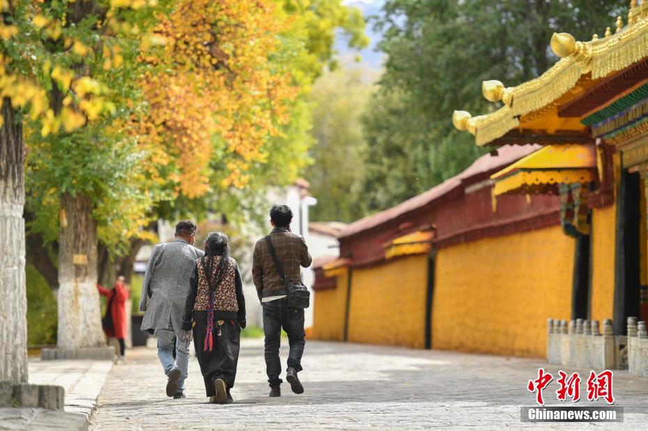 金秋十月,拉萨市西郊罗布林卡秋意正浓,景色宜人。众多市民、游客纷纷前往打卡。罗布林卡藏语意为“宝贝园林”,始建于公元十八世纪40年代,是典型的藏式风格园林,也是西藏的世界文化遗产之一,有格桑林卡、措吉颇章、金色颇章等宫殿建筑群。这里秋景如画,成为人们感受自然与历史文化的好去处。图为10月21日,民众在罗布林卡内参观游览。