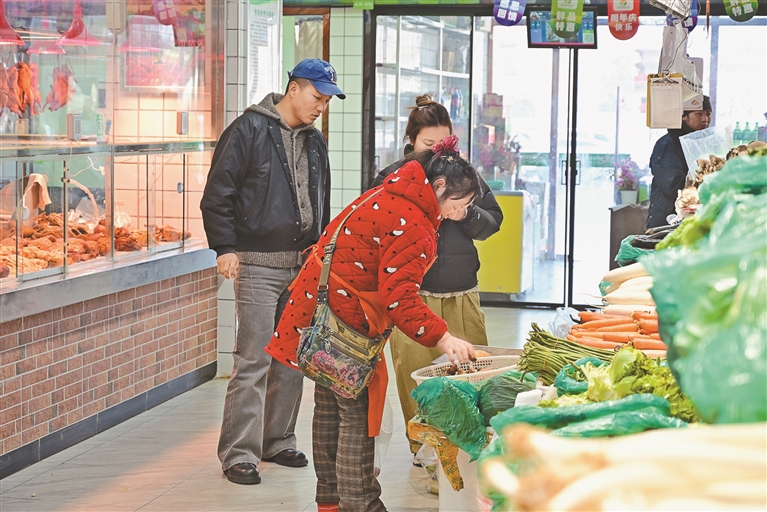 图为城关区贡布堂综合农贸市场内市民正在购买蔬菜。记者 王敏 摄