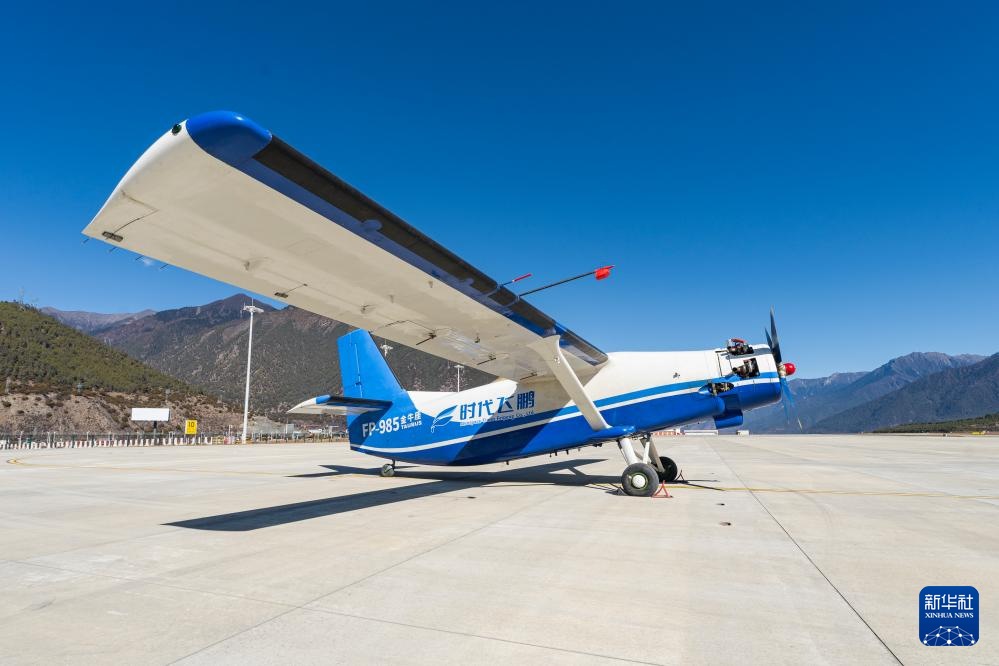 执行川藏高原跨区域无人机物流航线首飞的FP-985“金牛座”大型固定翼无人机。(新华社发)