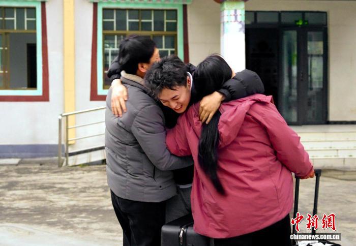 图为何军杰与从安徽合肥远道而来的父母团圆。受访者供图