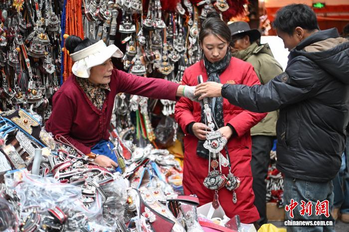 图为市民在八廓商城选购年货。中新社记者 贡嘎来松 摄