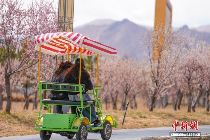 3月19日,随着雪域高原天气回暖,西藏拉萨处处春意盎然。拉萨河畔春花竞相绽放,市民游客徜徉在粉白花海中踏青赏景、驻足留影,尽享和煦春光与高原春日的独特韵味。图为市民漫步拉萨河畔,赏花观景,尽享春日美好。贡确 摄