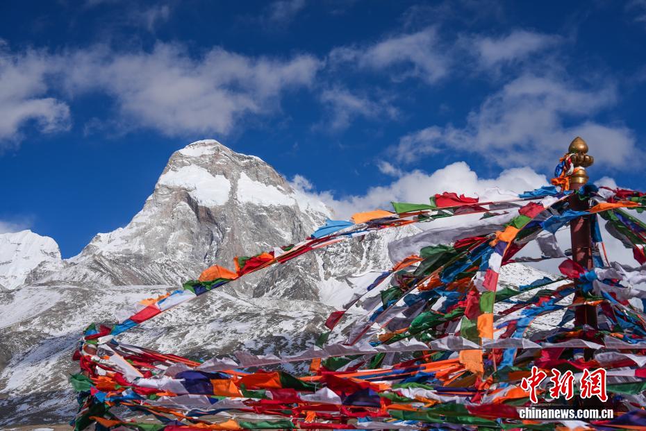 3月26日,西藏日喀则亚东县卓木拉日雪山银峰耸立,山脚下藏式村落错落,经幡随风舒展。牧民赶着牛羊归牧,与皑皑雪峰、高原草场相映,构成宁静壮美的春日图景。卓木拉日雪山位于亚东县帕里镇,又名“神女峰”。图为卓木拉日雪山与经幡相映成景。贡确 摄