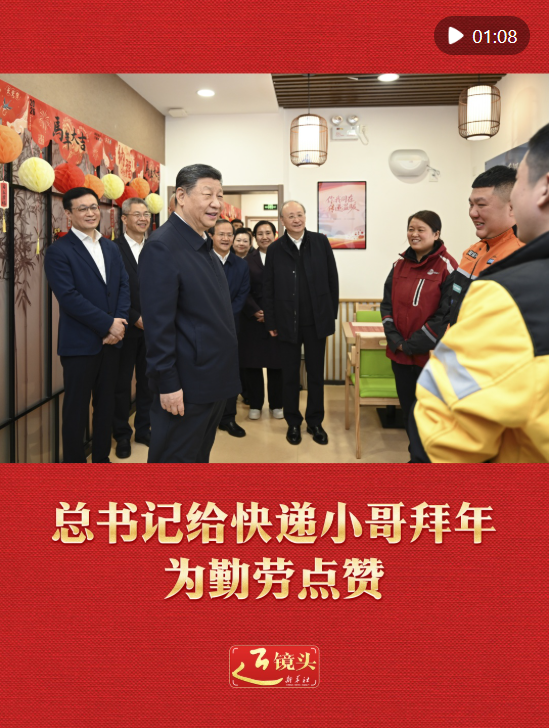 这是总书记又一次于春节前夕看望快递小哥。2019年春节前夕,总书记在北京考察时,就曾给快递小哥拜年,称他们为“勤劳的小蜜蜂”。
