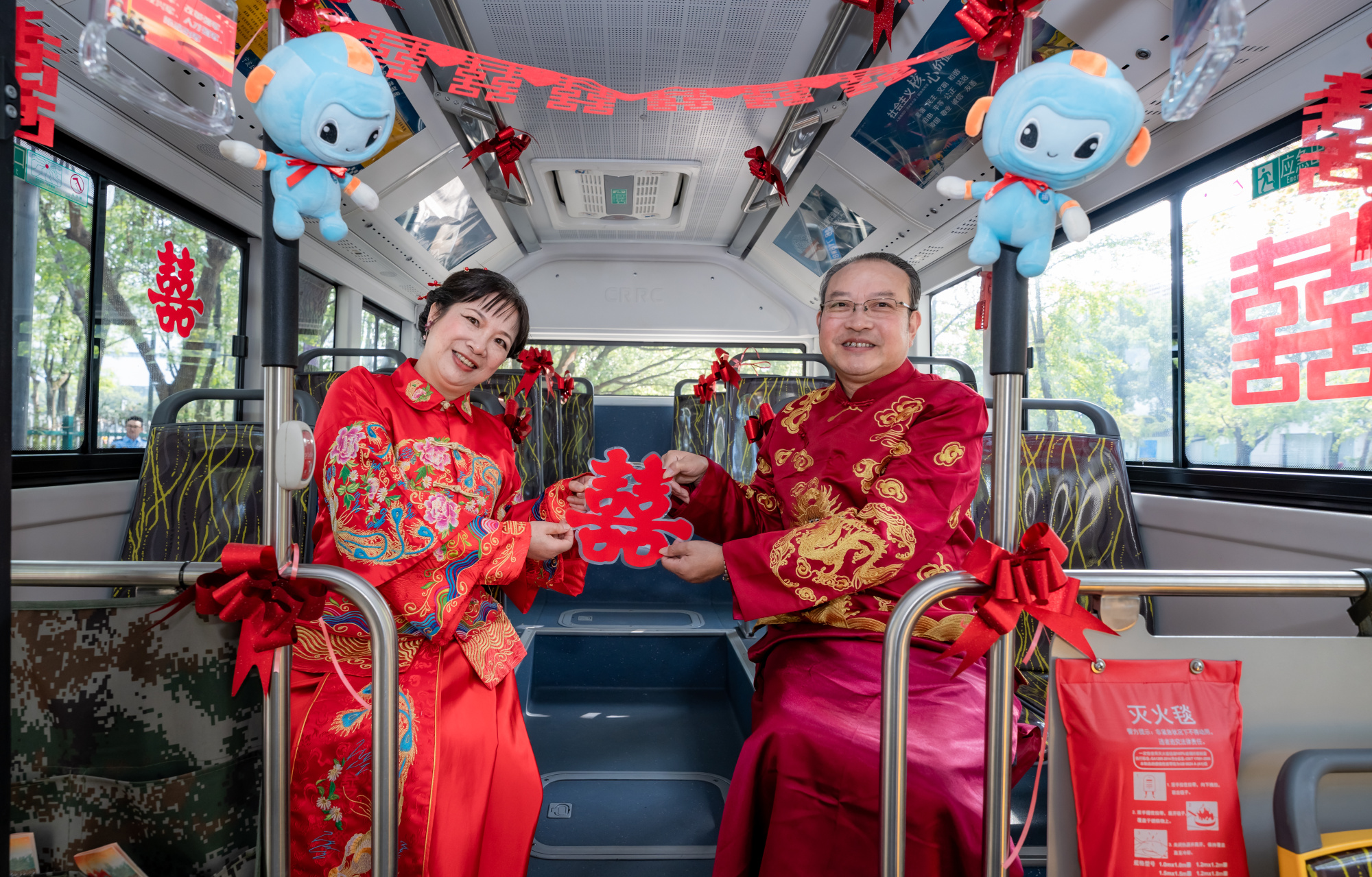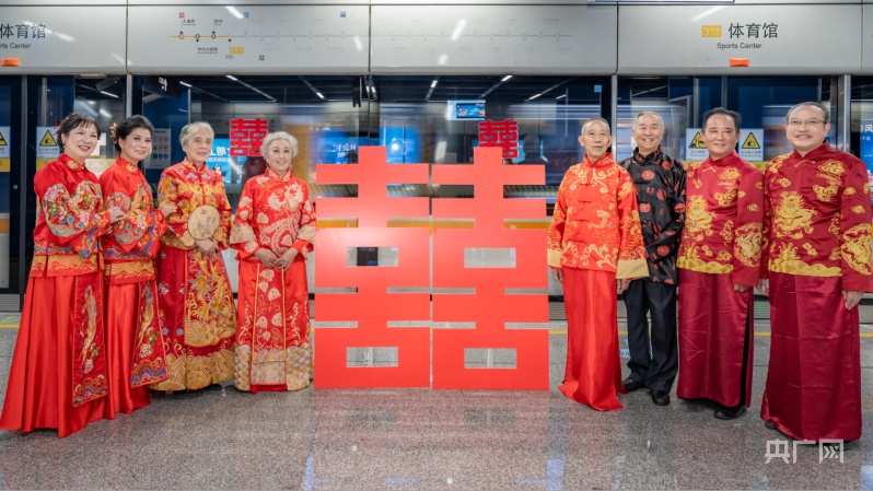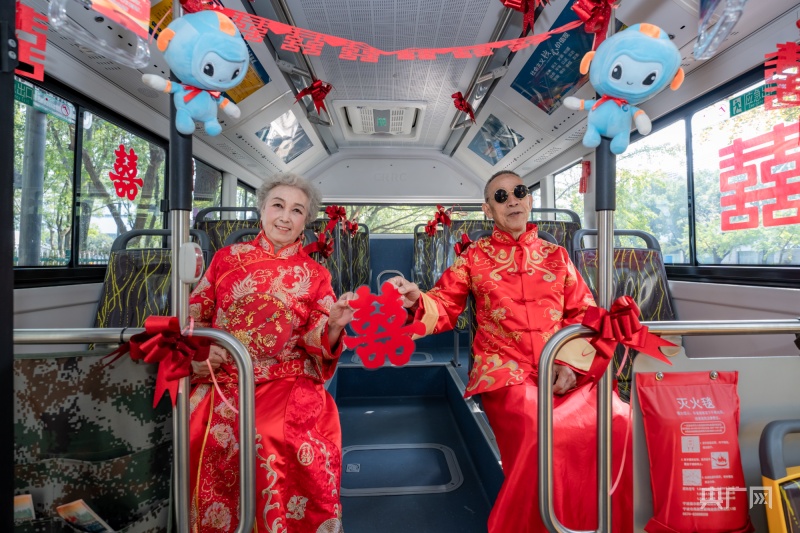 活动现场,来自潘火桥社区的4对老人,满怀期待地走进临时化妆间,认真挑选婚纱、礼服,配合完成上妆后,耐心等待着婚纱照的拍摄。此次婚纱照拍摄,地点设在公交车上和地铁站里。醒目的大喜字、鲜艳的花朵让现场充满了传统中式婚礼的浪漫氛围。“叔叔阿姨,看这里,笑一个……”在摄影师的引导下,前来参加活动的老人们很快进入了状态,听着相机快门的“咔嚓”声,大家脸上幸福的笑容都被瞬间定格。4对老人婚龄超过35年了,最久的今年已经有55年了。相濡以沫走过半个世纪,1968年结婚的蔡同笠和蔡敏英夫妇当年根本没有婚纱照,能够拍一组婚纱照圆梦,他们由衷地感到高兴。