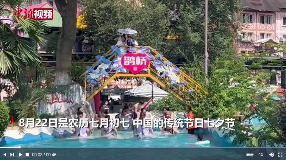 8月22日是农历七月初七,中国的传统节日七夕节。当日,重庆涪陵红酒小镇水上乐园里举行了一场水中趣味赛跑活动,吸引了不少情侣前来报名参加,玩水消暑,一同欢度七夕节。