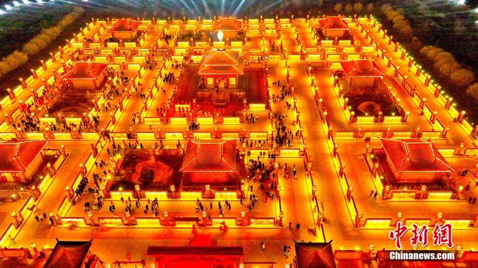 1月31日晚,甘肃省张掖市,“中国规模最大的灯阵”九曲黄河灯阵在甘州区碱滩镇屋兰古镇启灯迎客,吸引了众多市民及游客观赏规模宏大的非物质文化遗产带来的视觉盛宴和祈福祖国繁荣昌盛,喜迎元宵佳节。图片来源:视觉中国