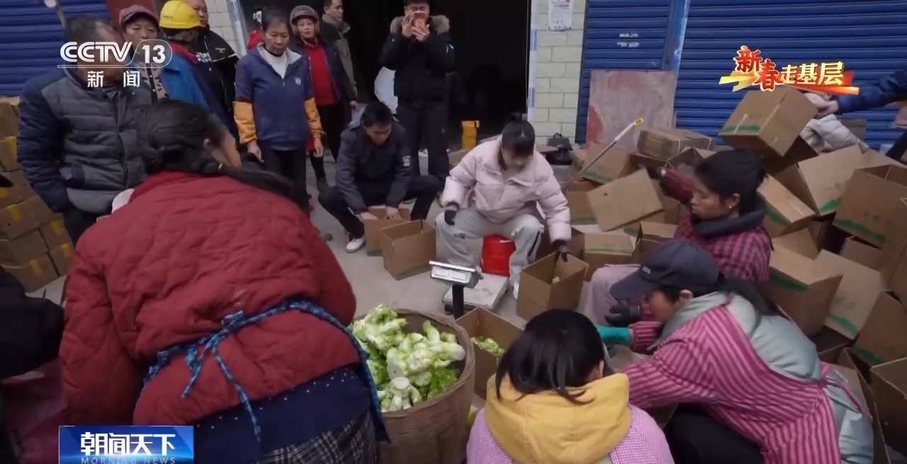 收来的菜,会通过电商帮菜农卖掉。一大早,上百名菜农带着上万斤土豆和儿菜赶过来。
