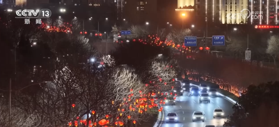 在郑东新区,街道两旁挂起了一盏盏大红灯笼,整座城市洋溢着浓郁的新春气息。