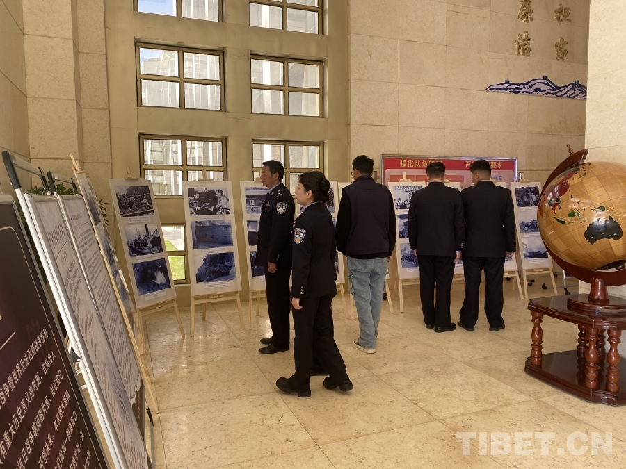 图为吉隆海关缉私分局组织民警参观主题图片展 摄影:肖富贵